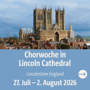 England-Chorwoche in Lincoln Cathedral 27. Juli – 2. August 2026 – Für 40 ambitionierte Sängerinnen und Sänger. Empfohlene Anreise individuell oder in der Gruppe:
